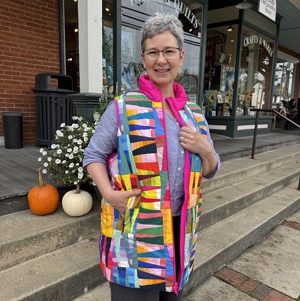 This is a fun, quick way to show off our beautiful work as a quilt-maker. Turn a plain vest into a one-of-a-kind creation by adding an old quilt, or a quilt top that you have made.