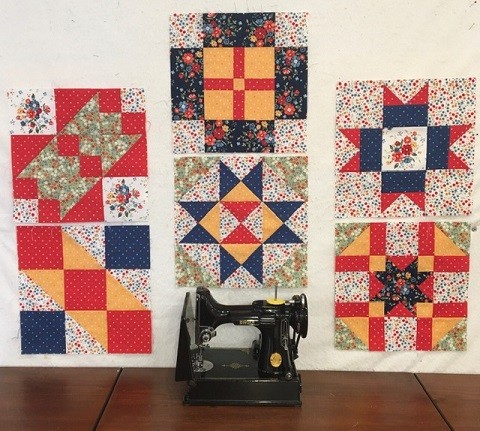 The Singer Featherweight Club celebrates America and the “Greatest Generation” with blocks that were published in the Kansas City Star newspaper in the early 1940’s. Each month will feature a specific technique, using rotary cutting and Deb Tucker’s Studio 180 Design tools instead of the templates used in the original patterns.