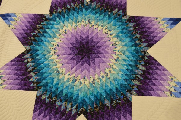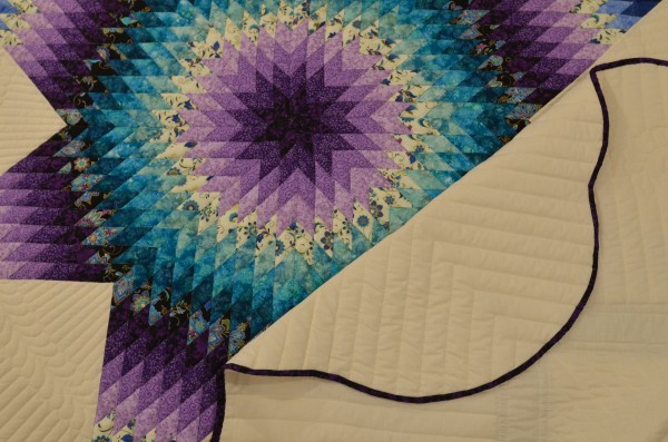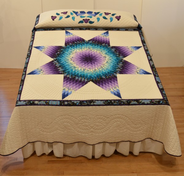 The Lone Star is a classic pattern that appeals to many buyers! It requires careful piecing for the diamonds to align perfectly and the center of the quilt to lay flat.