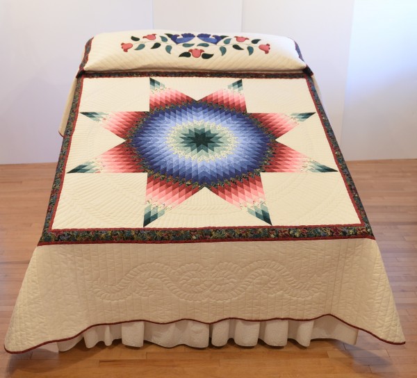 The Lone Star is a classic pattern that appeals to many buyers! It requires careful piecing for the diamonds to align perfectly and the center of the quilt to lay flat.