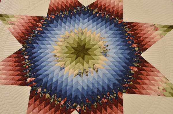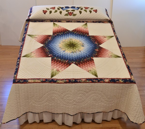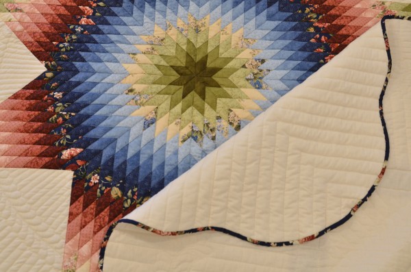 The Lone Star is a classic pattern that appeals to many buyers! It requires careful piecing for the diamonds to align perfectly and the center of the quilt to lay flat.