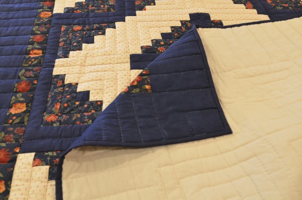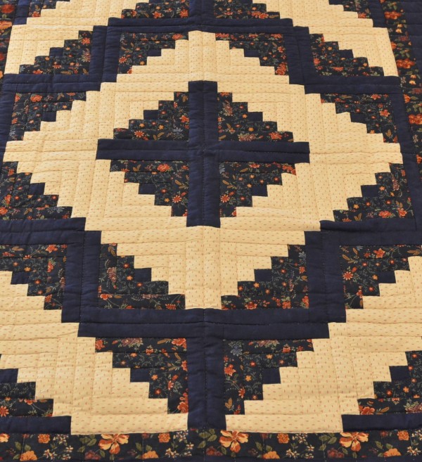 Traditionally, the center of the “cabin” features a red block for the fire or hearth, the gathering place of any home. Each "log" is accented with hand-quilting giving the quilt added loft and beauty.