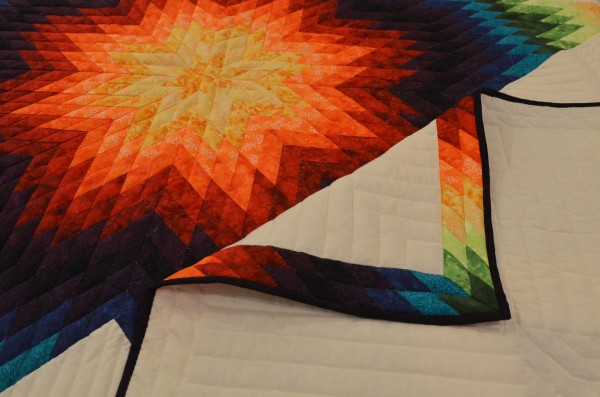 The Lone Star is a classic pattern that appeals to many buyers! It requires careful piecing for the diamonds to align perfectly and the center of the quilt to lay flat.