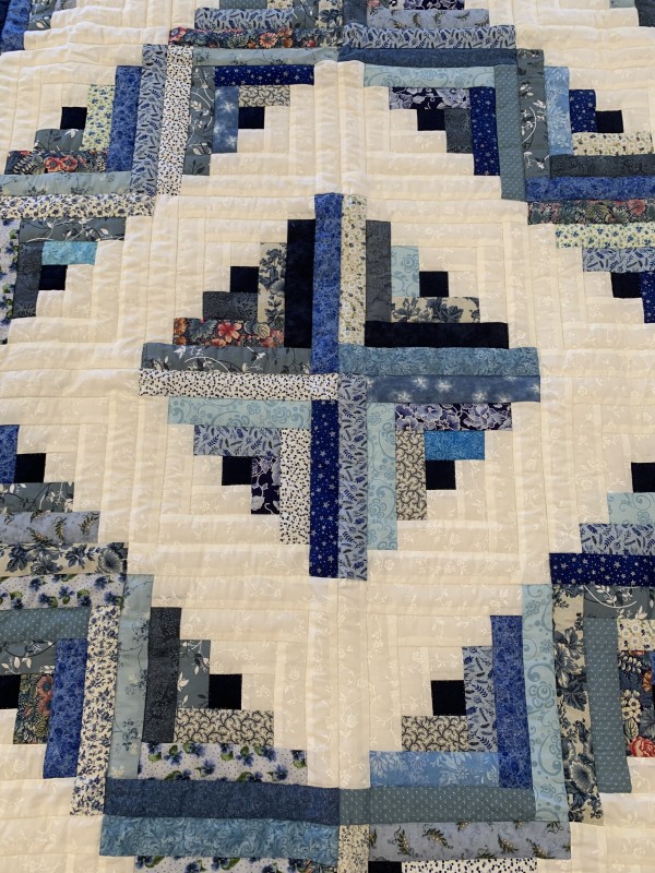 Traditionally, the center of the “cabin” features a red block for the fire or hearth, the gathering place of any home. Each "log" is accented with hand-quilting giving the quilt added loft and beauty.
