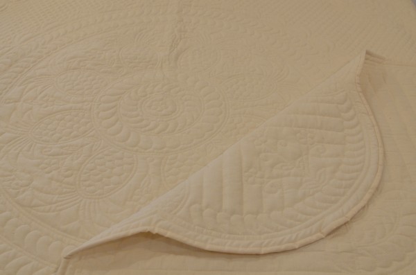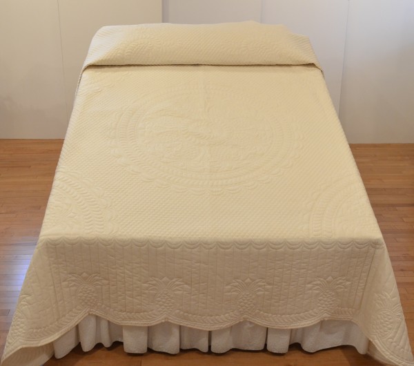 Nothing showcases hand-quilting like a Pineapple Whole-Cloth quilt! Study the intricate quilting designs, including extensive cross-hatching and carefully stitched pineapples. A whole-cloth quilt is an heirloom, indeed! Hand-quilted by an Amish friend, Lancaster County, PA.