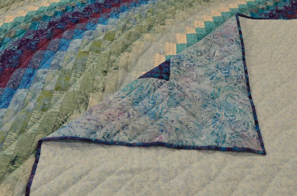 The more than 2,000 blocks are hand-quilted across the diagonal, enhancing the movement of the piece.