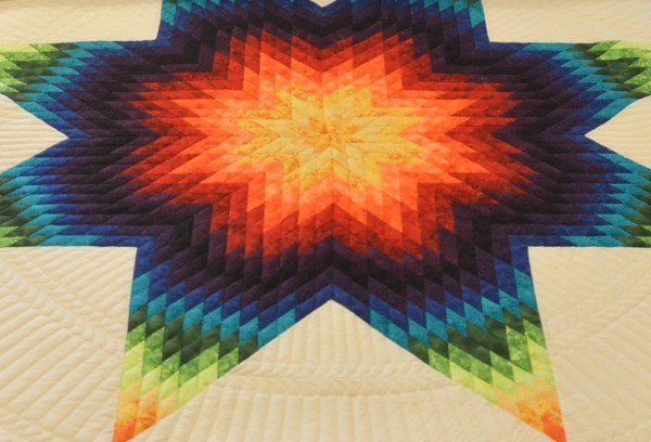 The Lone Star is a classic pattern that appeals to many buyers! It requires careful piecing for the diamonds to align perfectly and the center of the quilt to lay flat.