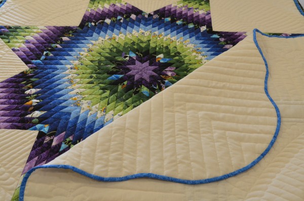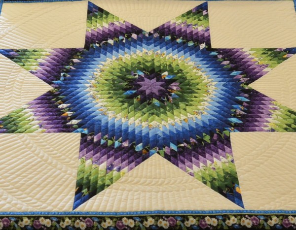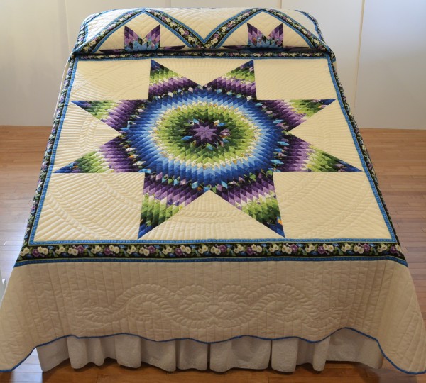The Lone Star is a classic pattern that appeals to many buyers! It requires careful piecing for the diamonds to align perfectly and the center of the quilt to lay flat.