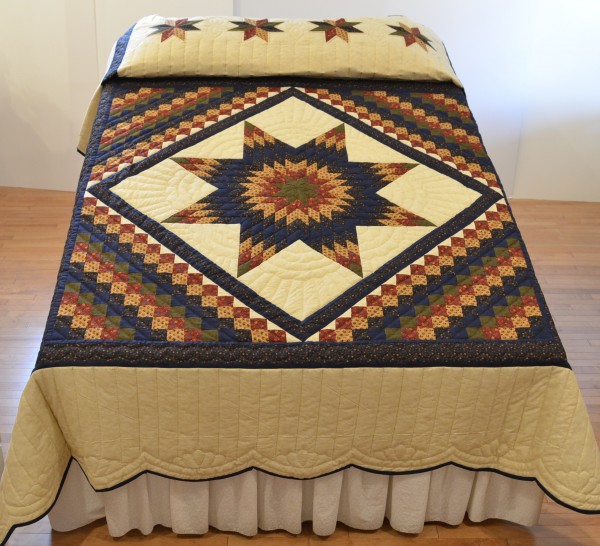 Expertly pieced and quilted, this design is desirable to fans of star quilts and those who like a focal point in their quilt.
