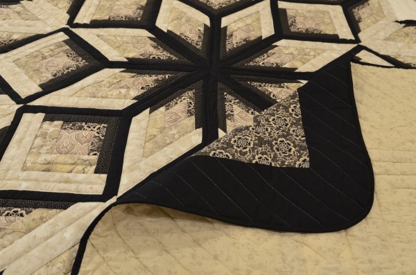 The surrounding Log Cabin blocks frame the medallion and radiate crisply out from the center. This quilt is the work of an expert piecer!