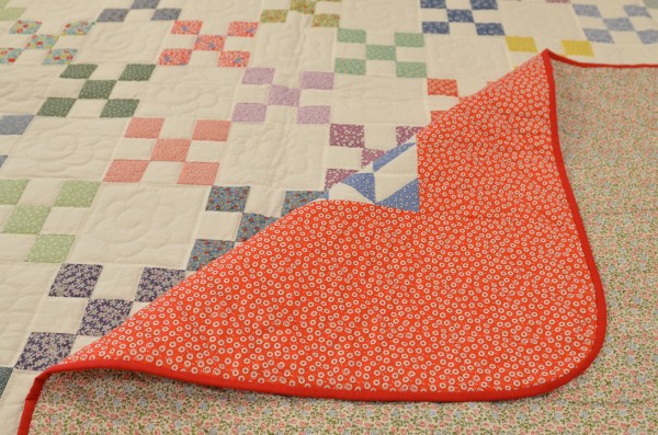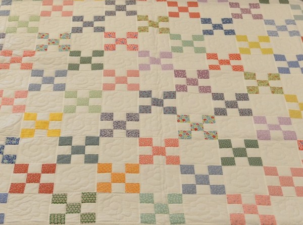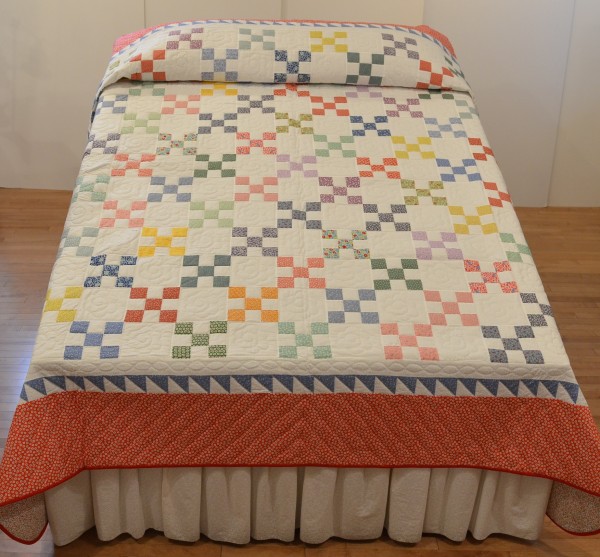 Admire the straightforward pattern and this quilter’s excellent choices in color value and placement. The basic blocks, married with a generous amount of hand-quilting create an understatedly elegant quilt!
