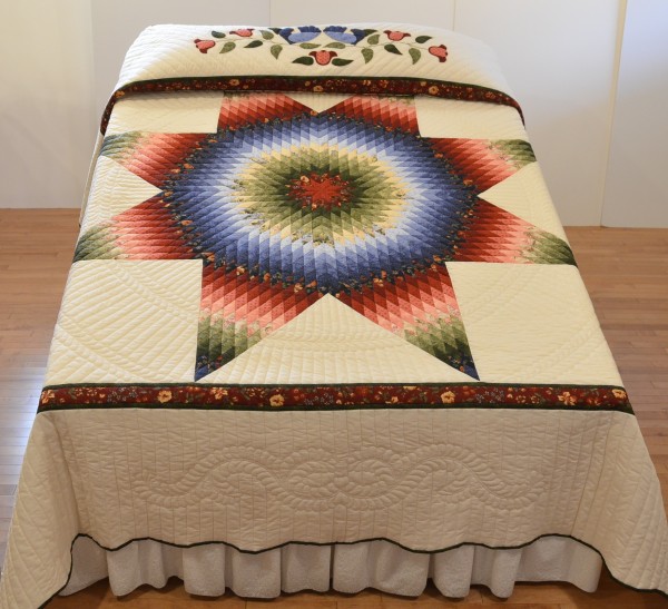 Our Lone Star quilts feature a bonus! Notice the special hand-applique on the pillow portion of the quilt. This design was created by the Amish quilt maker, and it is a perennial favorite.