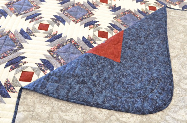 The all-over design holds a lot of energy and is happily framed with both sashing and border. This pattern is always a favorite among quilt buyers for is old-fashioned appeal and modern aesthetic.