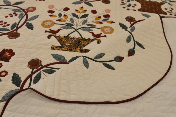 Notice the sawtooth border on the king-size version and the applique border on the queen-size quilt. Own your one-of-a kind applique quilt today!