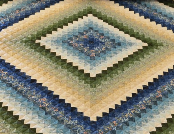 Shaded color values enhance the design, and sashing and borders help frame everything inside this handsome quilt.