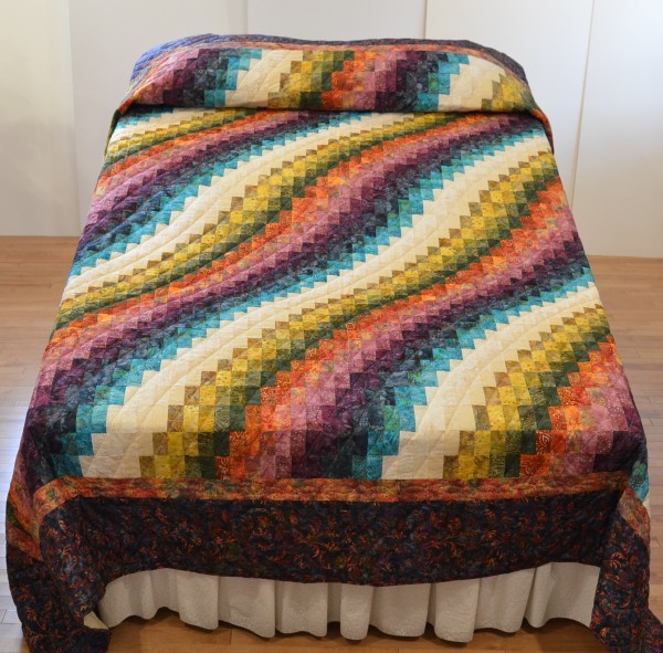 Bargello Wave is a stunning contemporary quilt with waves of color gracefully rippling across the top of the bed.