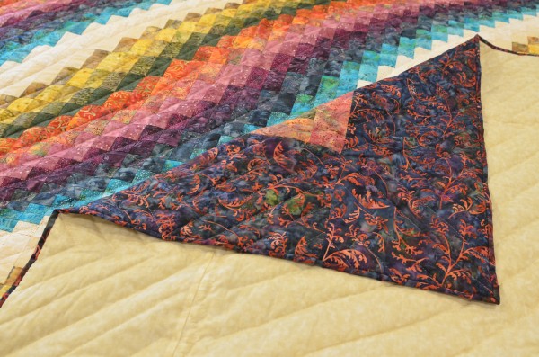 The more than 2,000 blocks are hand-quilted across the diagonal, enhancing the movement of the piece.