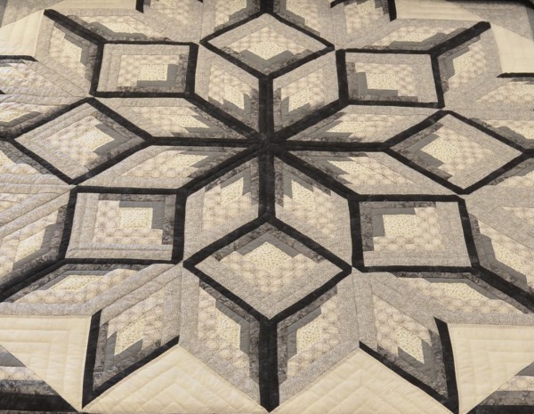 The surrounding Log Cabin blocks frame the medallion and radiate crisply out from the center. This quilt is the work of an expert piecer!
