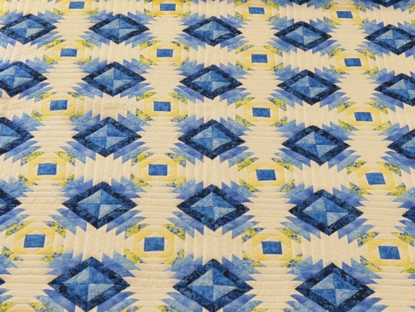 The all-over design holds a lot of energy and is happily framed with both sashing and border. This pattern is always a favorite among quilt buyers for is old-fashioned appeal and modern aesthetic.