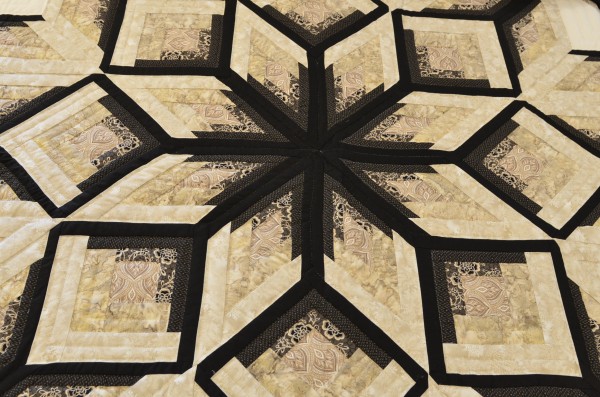 The surrounding Log Cabin blocks frame the medallion and radiate crisply out from the center. This quilt is the work of an expert piecer!