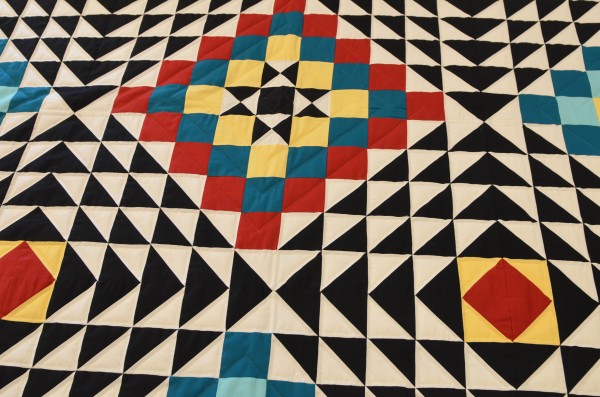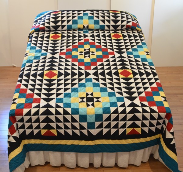 Blur your eyes for a kaleidoscope effect as you admire this striking quilt!