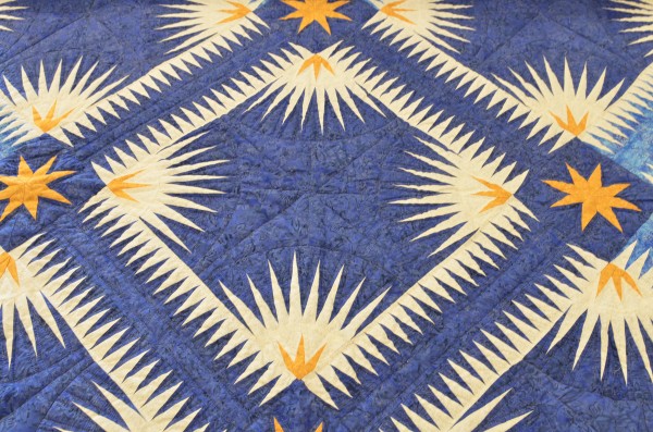A spectacular example of precise points, the gifted work of a seasoned paper-piecing quilter, this technique requires exacting skill and yields exquisite results! Just look at those icicle points—hundreds of them--but don’t overlook the lovely hand-quilting.