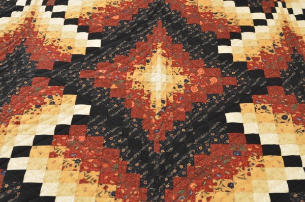 Diamonds on point, each comprised of two fabrics, make up the Diamond Jubilee design.