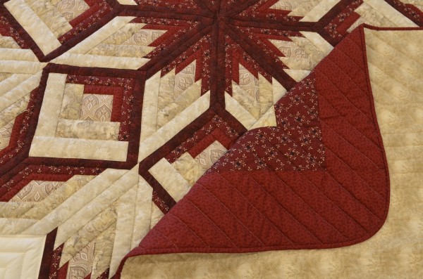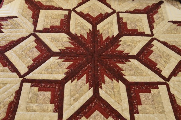 The surrounding Log Cabin blocks frame the medallion and radiate crisply out from the center. This quilt is the work of an expert piecer!