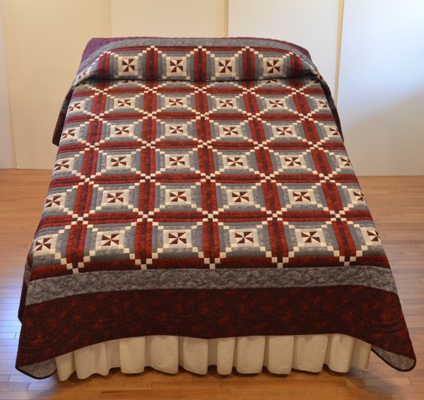 The best feature is the checkerboard effect from the little blocks that run diagonally through the body of the quilt, adding energy and punch to the traditional design.