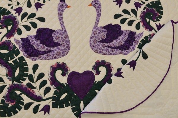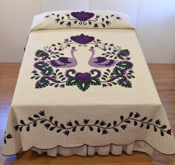 The applique detail is included on the pillow throw portion, both side borders, the bottom border, and the center portion of the quilt. Lovely!