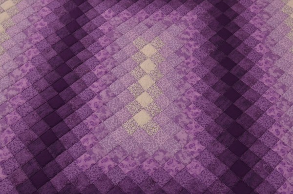 Generally designed from one or two color families, the overall design is understated. The blocks ripple out from the center to the border, with values of color repeating for a striped effect.