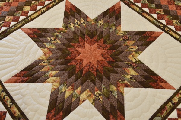 Expertly pieced and quilted, this design is desirable to fans of star quilts and those who like a focal point in their quilt.
