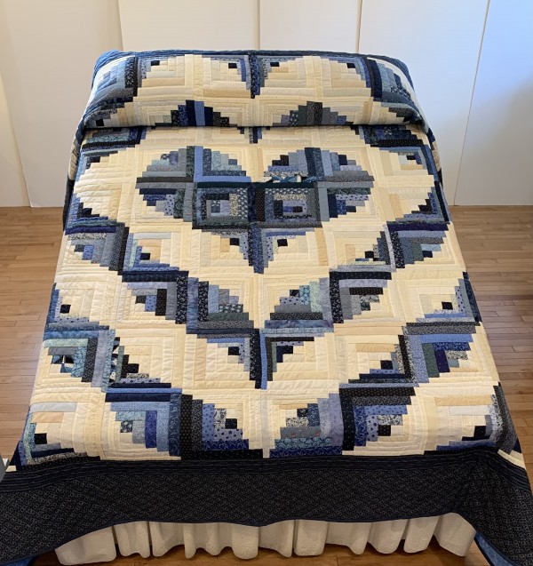 The familiar Log Cabin block is arranged using expert color choices to create the shape of a radiating heart! Hand-quilted by a Mennonite friend, Lancaster County, PA.