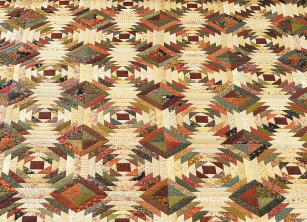 The Pineapple is a beloved variation of the traditional Log Cabin pattern. The center square (hearth of the home) stays the same in each block, but the remainder of the logs are varied, scrappy strips of fabric.