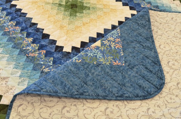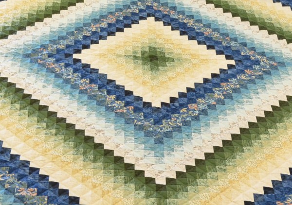 Shaded color values enhance the design, and sashing and borders help frame everything inside this handsome quilt.