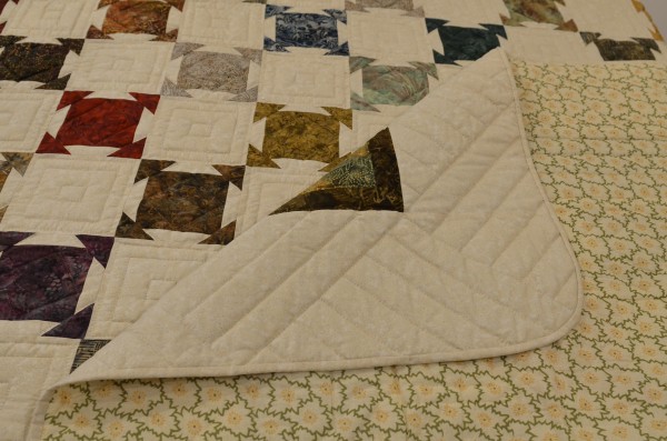 A less common pattern, Farmhouse Square features precisely pieced corners and extensive hand-quilting.