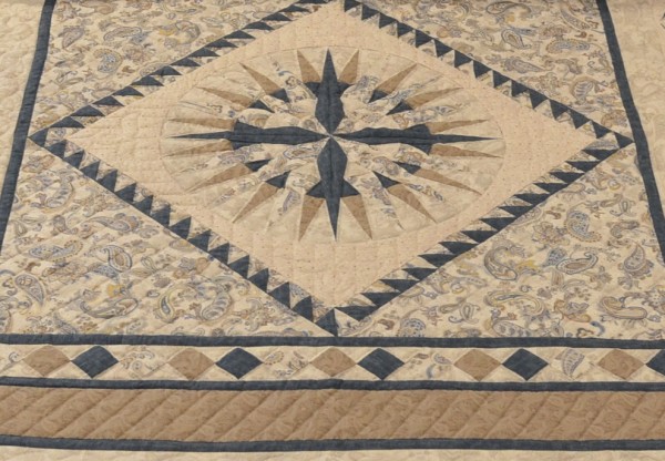 The bed skirt portion features Compass points and is a stunning accent to the overall design. The workmanship required to make this quilt is not for a beginner!