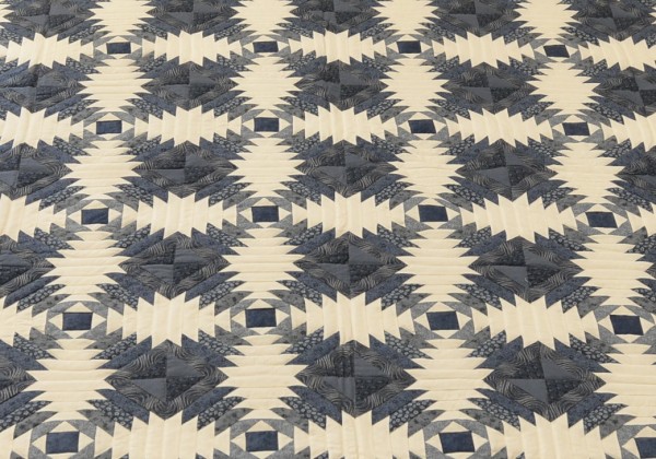The all-over design holds a lot of energy and is happily framed with both sashing and border. This pattern is always a favorite among quilt buyers for is old-fashioned appeal and modern aesthetic.