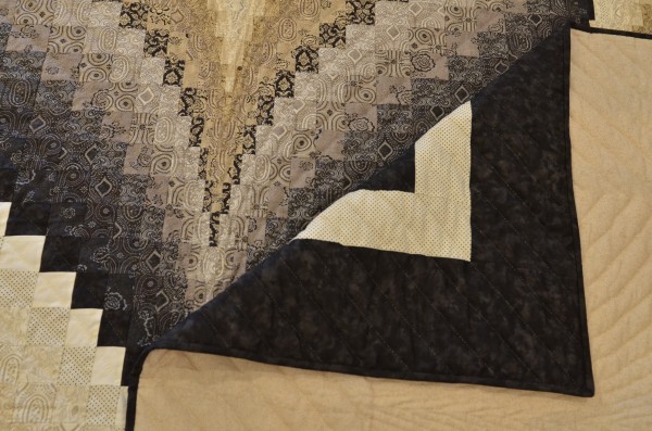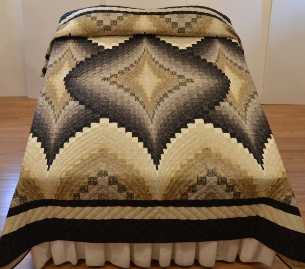 This more recently created version of Bargello piecing is pleasing to view both up close and from a distance. It’s many, many pieces and the attention to detail for placement make it the work of a master quilter.
