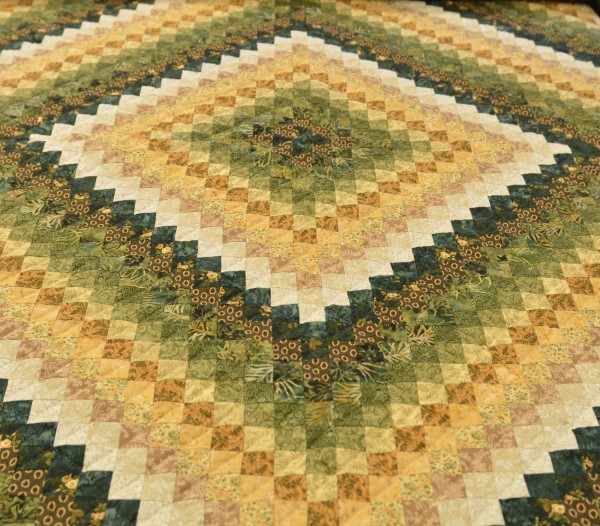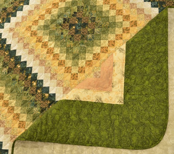 Shaded color values enhance the design, and sashing and borders help frame everything inside this handsome quilt.