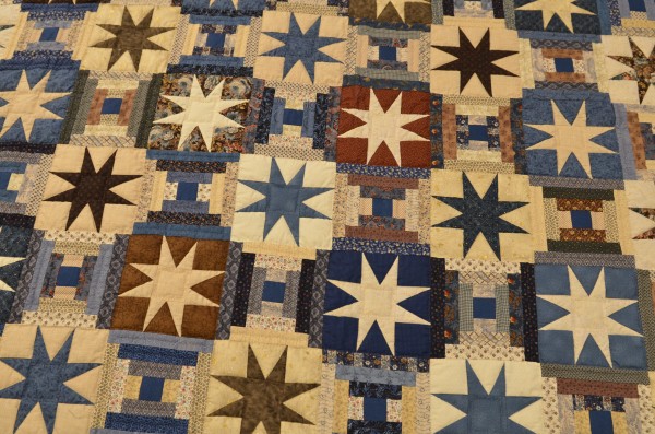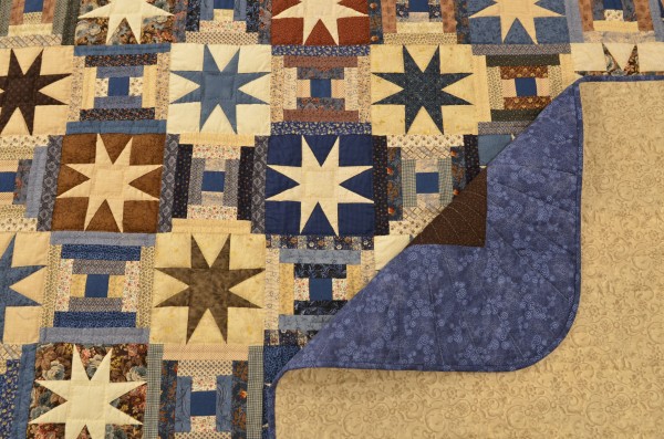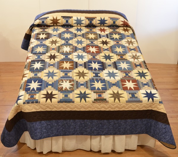 The popular Courthouse Steps block is an attractive partner with the 8-point star block. The two happily dance across the body of this quilt, framed with sashing and border.