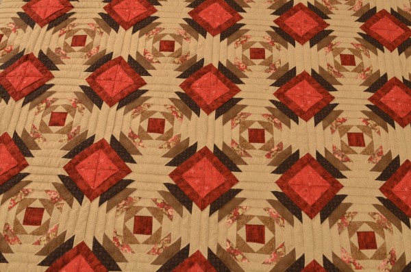 The all-over design holds a lot of energy and is happily framed with both sashing and border. This pattern is always a favorite among quilt buyers for is old-fashioned appeal and modern aesthetic.