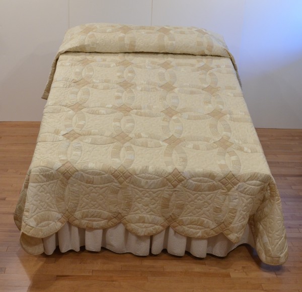 This traditional pattern is an elegant addition to any bedroom and is often gifted as a classic wedding or anniversary gift. The intertwining circles created from curved pieces of fabric require a skilled seamstress, and the intricate hand-quilting exemplifies outstanding workmanship.