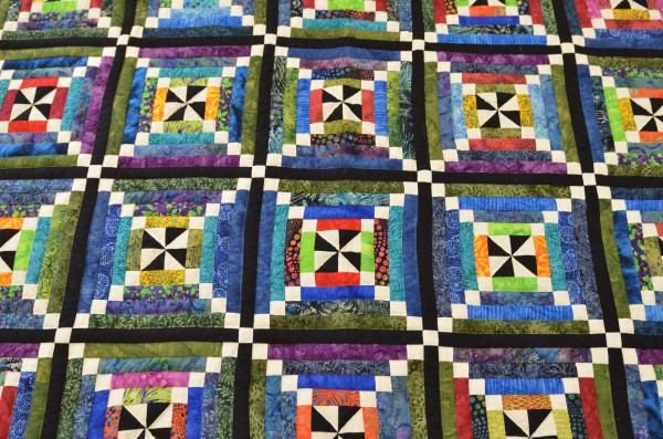 The best feature is the checkerboard effect from the little blocks that run diagonally through the body of the quilt, adding energy and punch to the traditional design.