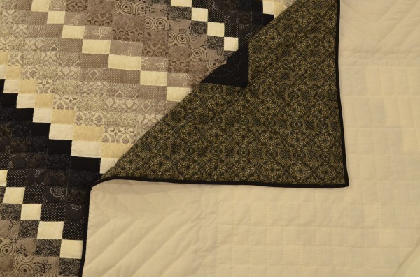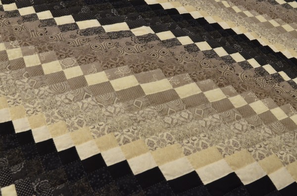 The more than 2,000 blocks are hand-quilted across the diagonal, enhancing the movement of the piece.