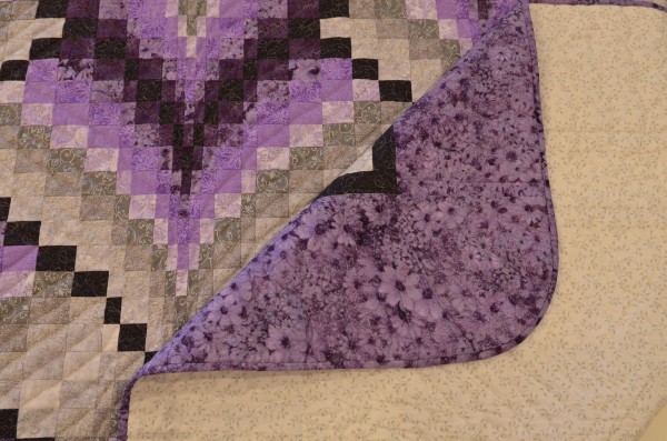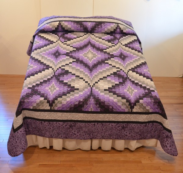 The shifting color values bring energy and excitement. Hand-quilting from corner-to-corner of each block enhances the design.
