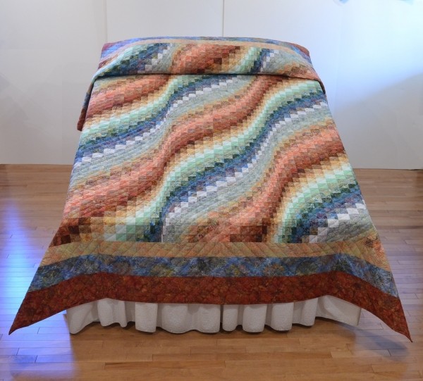 Bargello Wave is a stunning contemporary quilt with waves of color gracefully rippling across the top of the bed.