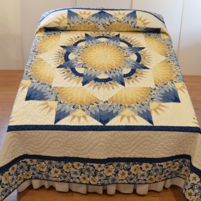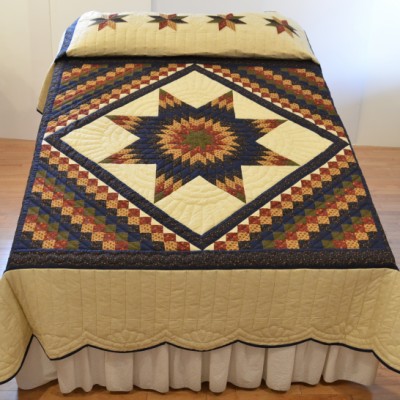 This quilt marries the popular Lone Star pattern with a Boston Commons pattern.