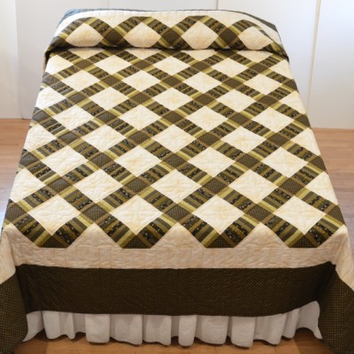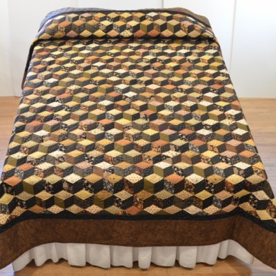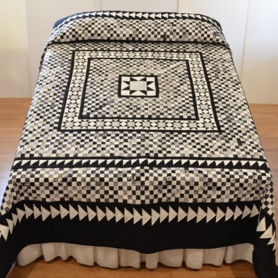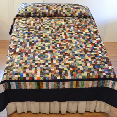 The more than 2,000 blocks are hand-quilted across the diagonal, enhancing the movement of the piece.