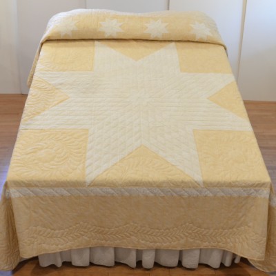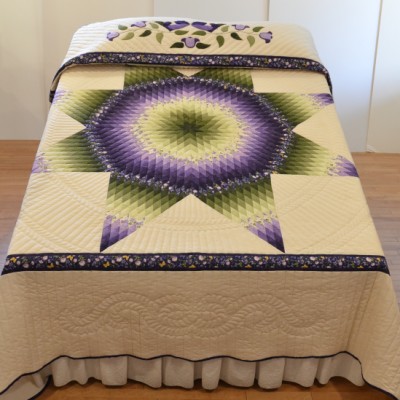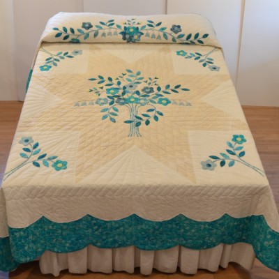 Precise piecing and intricate hand-quilting make this quilt a stunning heirloom.